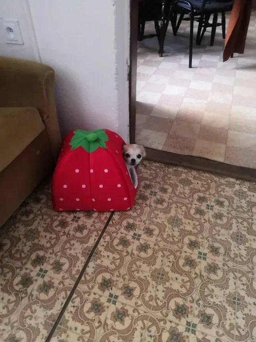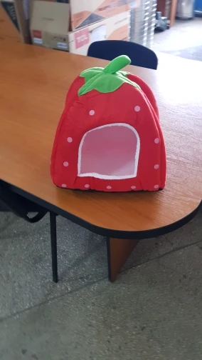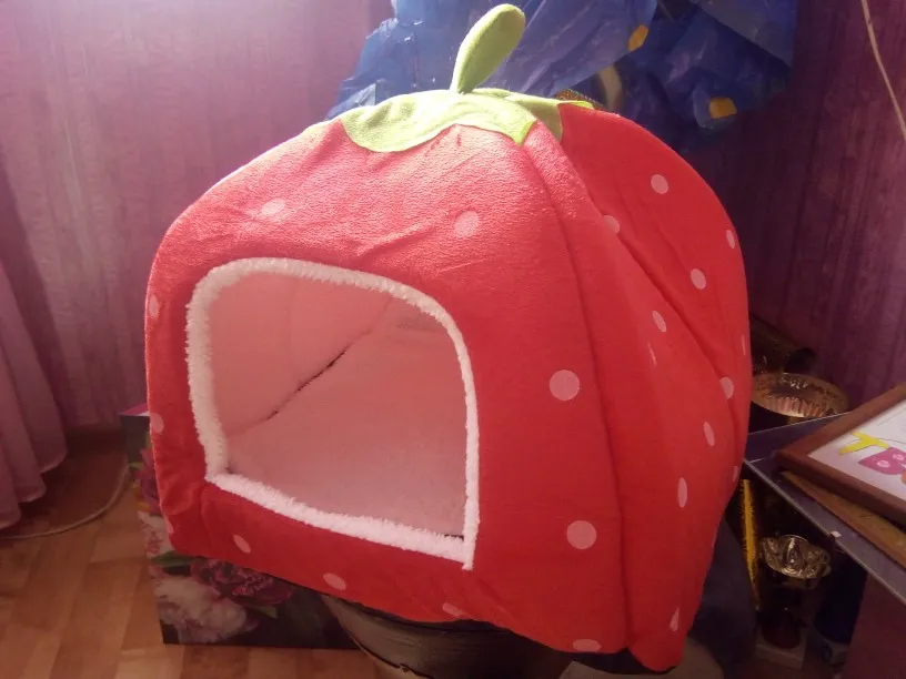 Give your pal a relaxing, secure place to lounge and snooze with the Strawberry Pet Bed. Perfect for cats and small dogs alike, this cave-shaped pet bed is fully padded on all sides for a comforting, den-like hideout. This igloo is great for chilling and snoozing! The comfy sleeping area is lined with an ultra-plush fabric that’s soft and snuggly, with a fluffy cushion for added comfort—which is removable for simple cleanup. The entire bed is also machine washable so it’s easy to keep clean and cozy, and also flattens for simple storage or to take along your travels as a home away from home. Plus, it comes in strawberry printed colors to accent any home décor.